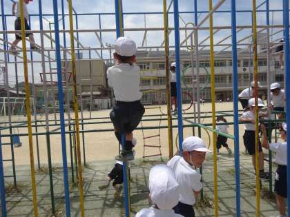 2組は,体育でてつぼうをしました。