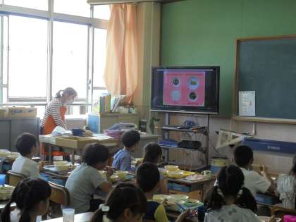 「だし」のうまみを感じて,おかわりする児童も