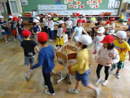 算数科「いくつといくつ」の学習で,列ごとに椅子取りゲームをしました。6脚の椅子に座れたのは・・・・