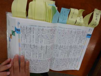 追伸:事前にたくさんの言葉を調べたくさんの付箋がはってある辞書が。この意欲すばらしいですね。