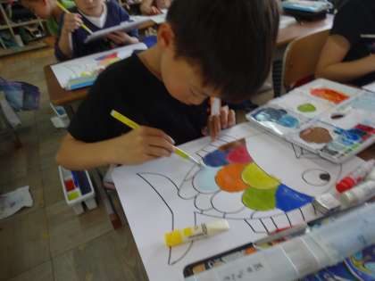 絵の具で『色・水・筆』の使い方を確認しました。