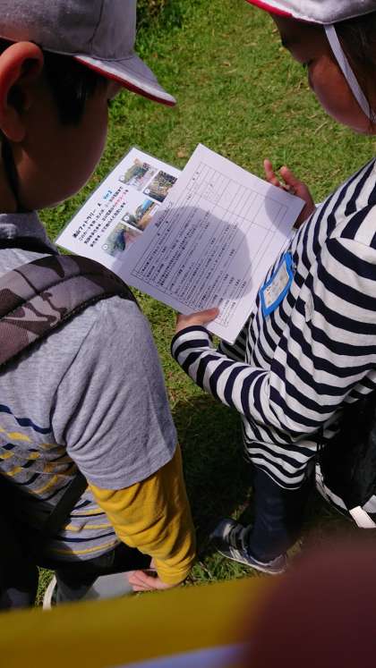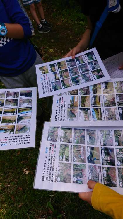 子どもたちは写真地図をもっています。