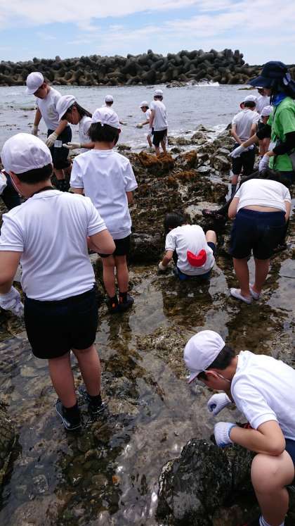 軍手をしてるので、みんなたくさんの生き物をとって、
