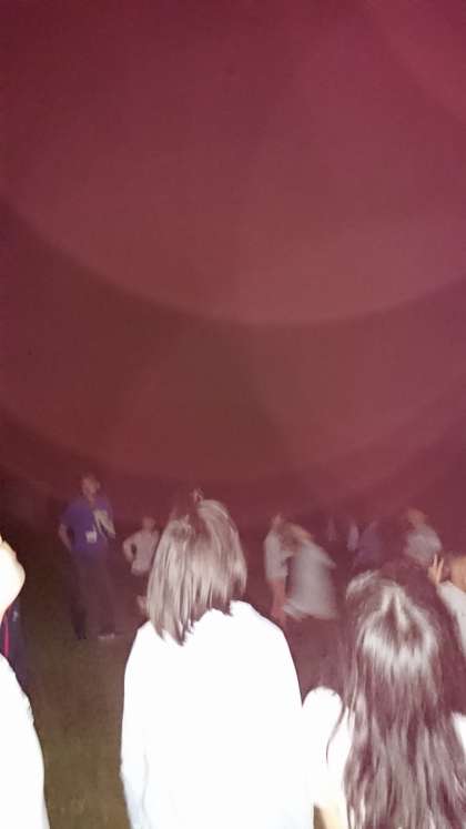 ナイトハイクの後は天体観測です。谷井先生の説明を聴いて夜空を見上げます。