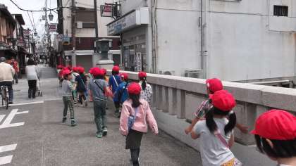 大手筋商店街や納屋町商店街,龍馬通りを中心に町探検しました。休憩時間には子楽園や伏見公園にも行き,地域の良さを改めて感じることができました。