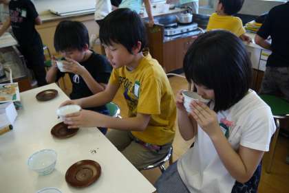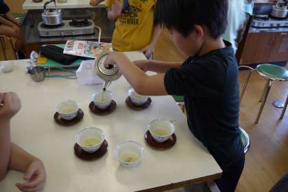 自分たちなりにいれたお茶と,教科書通りいれたお茶を飲み比べてみました。すると,教科書通りにいれたほうがとてもおいしく入り,どの子もお茶を飲みながらほっこりすることができました。