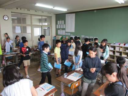 本校では今年度「つながり」をテーマに学習しています。その中で「つながりタイム」として,友達同士で交流する時間をとっています。仲間に説明したり,考えを広げたりすることで子どもたちの理解が深まり,主体的に学習することができています。