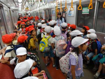 帰りの電車は,行きよりは少ない車内でした。