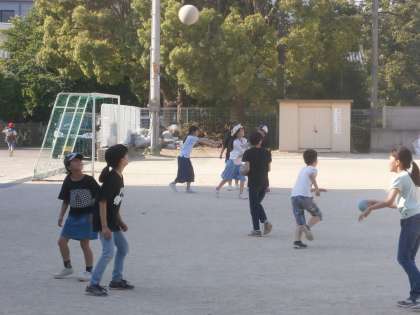 写真は放課後の様子です。放課後は帽子をかぶっている子どもが少し増えていましたが,遊んでいる子どもたちの7分の1くらいでした。