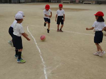 ボールの転がし方や避け方をみんなで考え,交流しました。