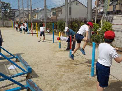 友達がやっている技を見て自分もトライしてみたり,「どうやるの?」と尋ねたり,子どもたち同士で話す様子もありました。