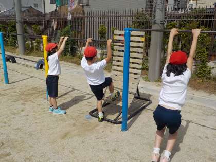 鉄棒をしっかりにぎることや,体重のかけ方,バランスの取り方などを身に着けることができるように頑張っています!