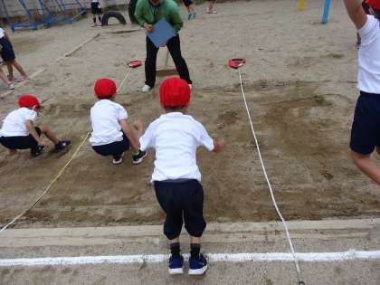 担任の先生がいる場所に向かって,思いっきり跳びました★