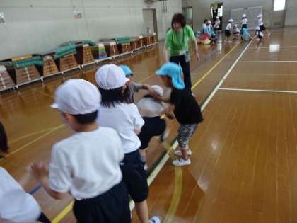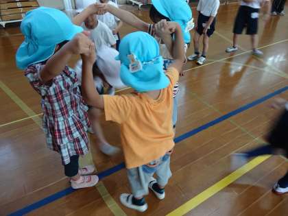 まずは,1年生が橋になりました。次に幼稚園の友だちが橋になりました。もっともっと仲良くなることができました。