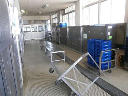 学校薬剤師の海老池先生が「給食施設定期検査」,「配膳施設定期検査」に来られました。給食室が清潔で安全であるかを「31項目」で検査してくださいました。4人の給食調理員さんがきれいに掃除され,清潔な環境が保たれていました。海老池先生からも「とてもきれいですね。大きなお鍋のふたもピカピカですね。」と,ほめていただきました。