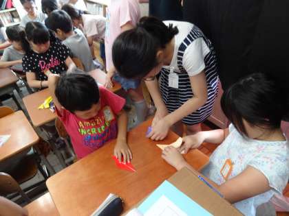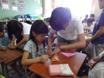 困っていると,6年生が登場。作り方を丁寧に教えてくれるとともに,一緒に作ってくれました。