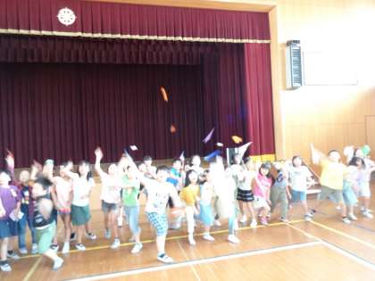 最後は全員で一斉に紙飛行機を飛ばし,幻想的な景色が体育館に広がりました。