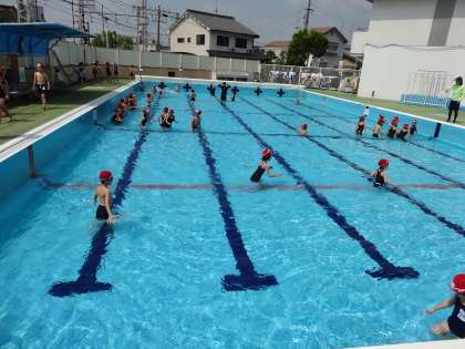 今日からシャワーを浴びた後,自分たちで準備体操をし水慣れをしました。