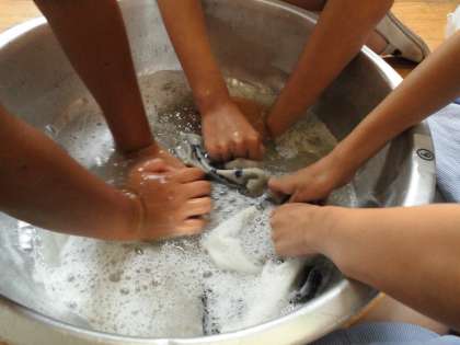 家庭科の学習で洗濯実習を行いました。