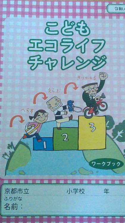 授業の最後の振り返りでは,ぜひ家庭でも実践したいという思いがあふれていました。1人1冊夏休みに家庭でエコライフに取り組むためのワークブックももらい,未来の地球のために実際にエコライフに取り組んでいくのが楽しみです。