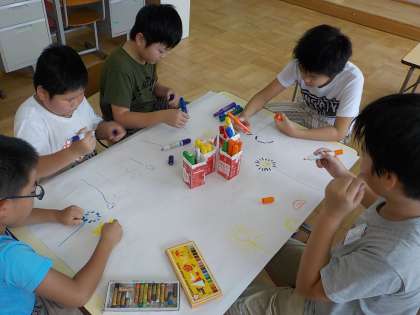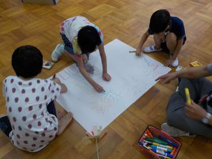 友達の花火の工夫も取り入れて,とても楽しんで花火を描くことができました。