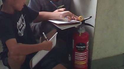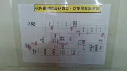 社会科の時間に,火災にそなえた消防用設備が学校にどのくらいあるのか探検をしました。消火器,防火扉,消火バケツ,非常ベル,火災報知器など,学校内にはぞれぞれの階のいたるところに,消防用設備があることが分かりました。
