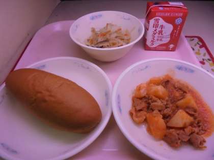 「こくとうコッペパン」と「ぶたにくのケチャップに」を