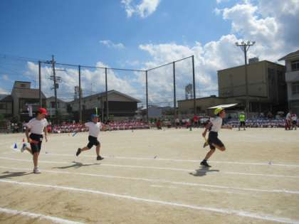 4年生から6年生までの高学年が心のバトンをつなぎました。最後まで抜きつ抜かれつの好レースでした。