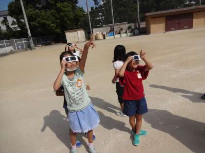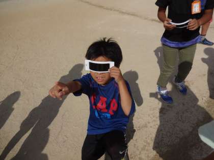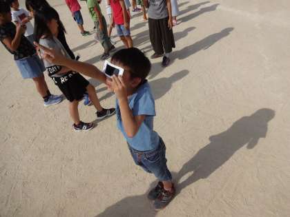 理科でかげの向きを調べています。