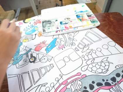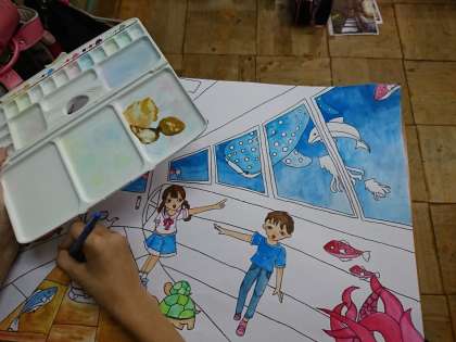 図画工作科でお話の絵をかいています。
