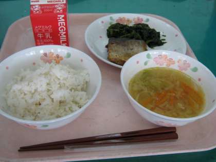 「きょうの給食のさばのしょうがには,身がぷりぷりでおいしかったです。さばのほねがきれいにとれたので,きもちよかったです。また,さばのしょうがにをだしてください。」