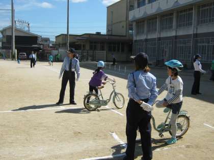 4年生は,自転車教室を行いました。警察署の方に来ていただき,正しい自転車の乗り方や交通ルールについて教えていただきました。