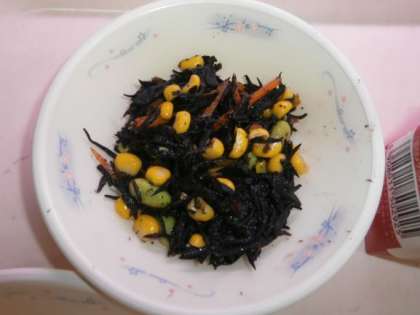 「ひじきのソテー」は,枝豆の緑色,にんじんの赤色,