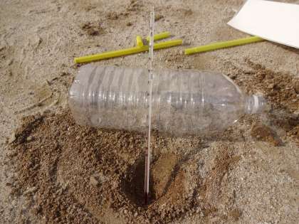 理科です。日なたと日かげの温度の違いを温度計を使って観察しました。