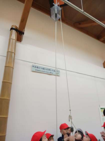 種を箱に入れて上まで送ります。そして,箱が開くとクルクルと種が落ちてくる様子が体験できる展示物です。ずっと,いる人もいて,次に来る友だちに説明したくてウズウズしていました。