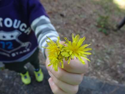 一人一つ採集しました。タンポポやモミジも採集しました。