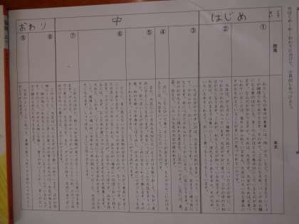 国語科「すがたをかえる大豆」の文章を,はじめー中ー終わりに分けました。