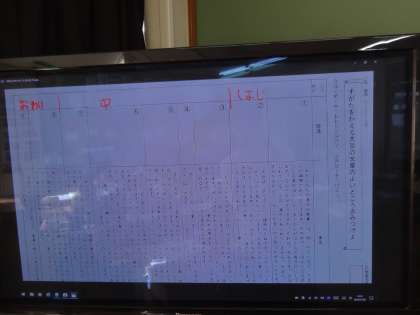 いくつかの考え方がでたので,タブレットに記入しながらみんなに考えを説明をしています。