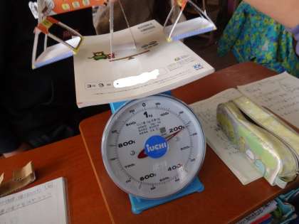 共通の単位の「g」を学習し,教科書の重さをはかりました。