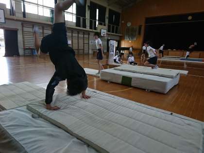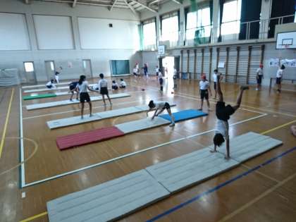 体育科で「マット運動」の学習を行っています。