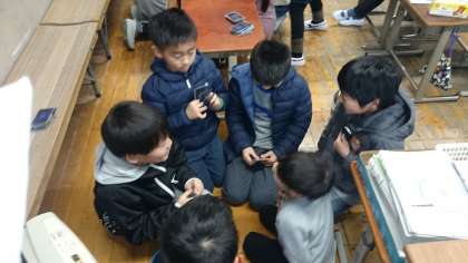 雨なので,今日の休み時間は友だちと教室で過ごしています。