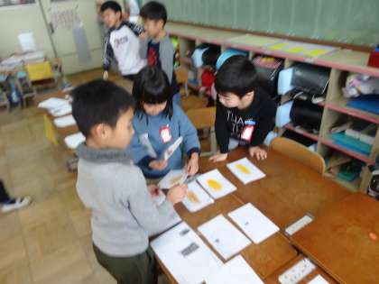 授業の最後にお店屋さんを開きました。お客と店員さんに分かれます。
