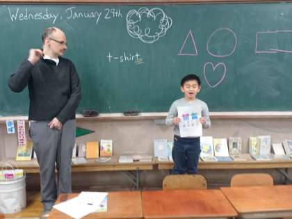 外国語活動で,オリジナルTシャツを作ってみんなに紹介しました。