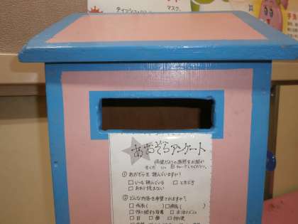 2月の保健だより「あおぞら」では,アンケートを募集しています。保健室前のピンクのポストまでお願いします。