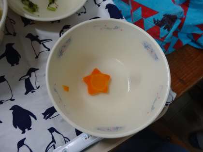 ☆白菜の吉野汁に人参が入っていたのですが,ラッキーな人には星形のハッピーキャロットが入っていました☆子どもたちは大喜びです。今日もたくさんの人のおかげで,できた給食に感謝していただきました。