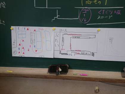 コースを決めるために話し合ったり,黒板を使ってコース図を作ったりと自分たちで進めています。