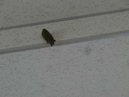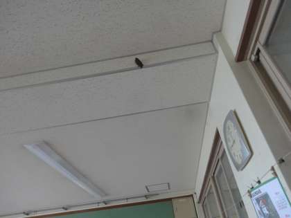 鶯?メジロ?小鳥さんが入ってきました。なかなか外に出てくれず困りましたが,何とか大空に帰ってもらいました。一緒に勉強したかったのかな。