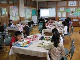 伏見南浜小学校には,ランチハウスといって給食を食べたり食について学習する部屋があります。