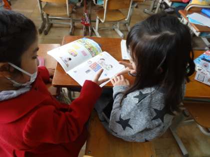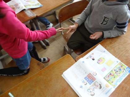 次に友だちとじゃんけんをして,1マス塗っていき,どちらが多く陣地を取れるかのゲームをしました。見て分かる大きさの違いを実感できました。