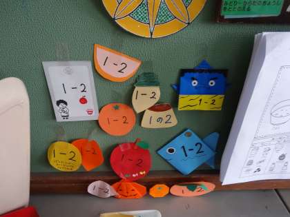 給食調理員さんからプレゼントが届きました。メニューに季節の食べ物やデザートがある時は,可愛いプレゼントが届きます。そのプレゼントは教室に掲示しています☆可愛いでしょ。